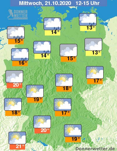 Die Temperaturen bewegen sich zwischen 13 und 16 Grad im Norden. In den übrigen Landesteilen werden mildere 17 bis 21 Grad erreicht, an den Alpen bei möglichem Föhndurchbruch vielleicht auch nahe 25 Grad.