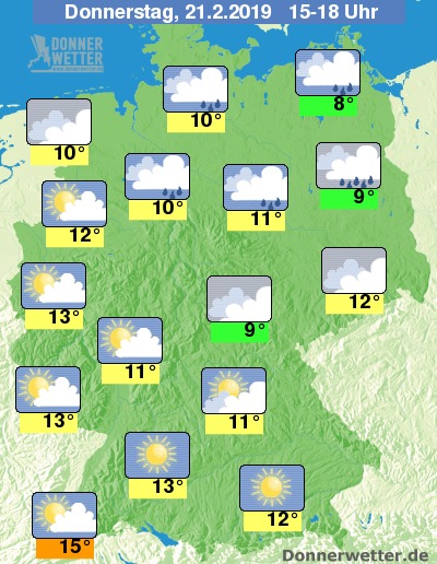 Im Laufe des Nachmittags breitet sich der Regen etwas weiter ins Binnenland aus. Dagegen können die Temperaturen dank intensiven Sonnenscheins am Kaiserstuhl noch auf vorfrühlingshafte 15 Grad klettern.