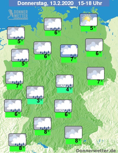 Im Nachmittagsverlauf und am frühen Abend weiten sich dichte Wolken auch über den Osten Deutschlands aus. Weiterhin fällt verbreitet Regen, die Schneefallgrenze steigt in den Abendstunden auf 800 bis 1000 Meter an. Weitgehend trocken bleibt es meist nur noch an der Oder sowie am Alpenrand.