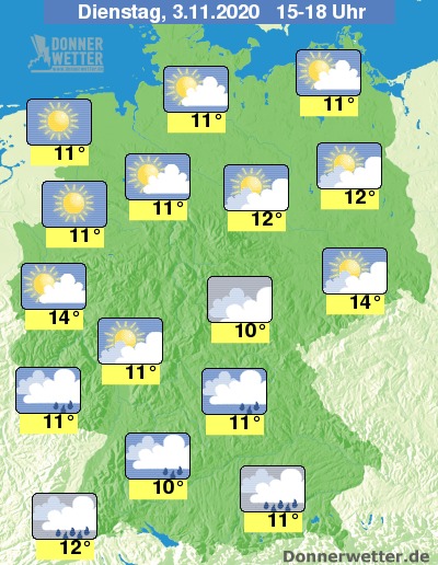 Bis zum frühen Abend ändert sich an der Wetter- und Temperaturverteilung in den meisten Regionen nicht wirklich viel. Der Regen im Süden dehnt sich allerdings bis zum Bayerischen - Wald aus und am Abend können im Nordwesten örtliche Schauer hereinziehen.