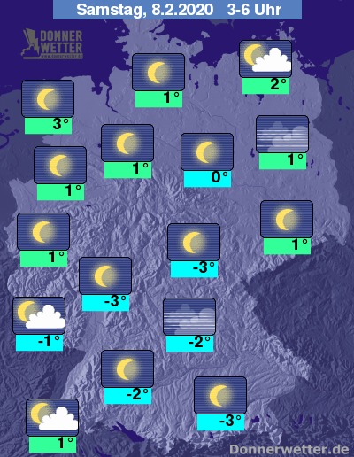 Bis zu den Frühstunden sinken die Temperaturen auf 0 bis 3 Grad in der Nordhälfte und -4 bis 1 Grad in der Südhälfte. Am Alpenrand wird es aber noch spürbar kälter. Es muss mit Reifglätte gerechnet werden.
