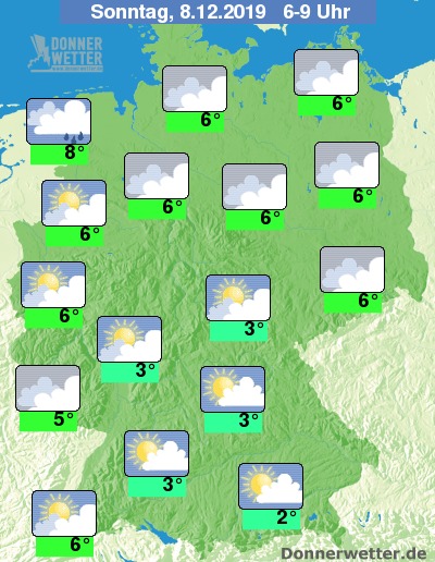Der zweite Adeventssonntag startet im Norden und Osten mit einer meist geschlossenen Wolkendecke, an der Nordseeküste können auch ein paar Tropfen Regen fallen. Im Süden und Westen ist es teils heiter bis wolkig, teils aufgelockert bewölkt und es bleibt trocken.