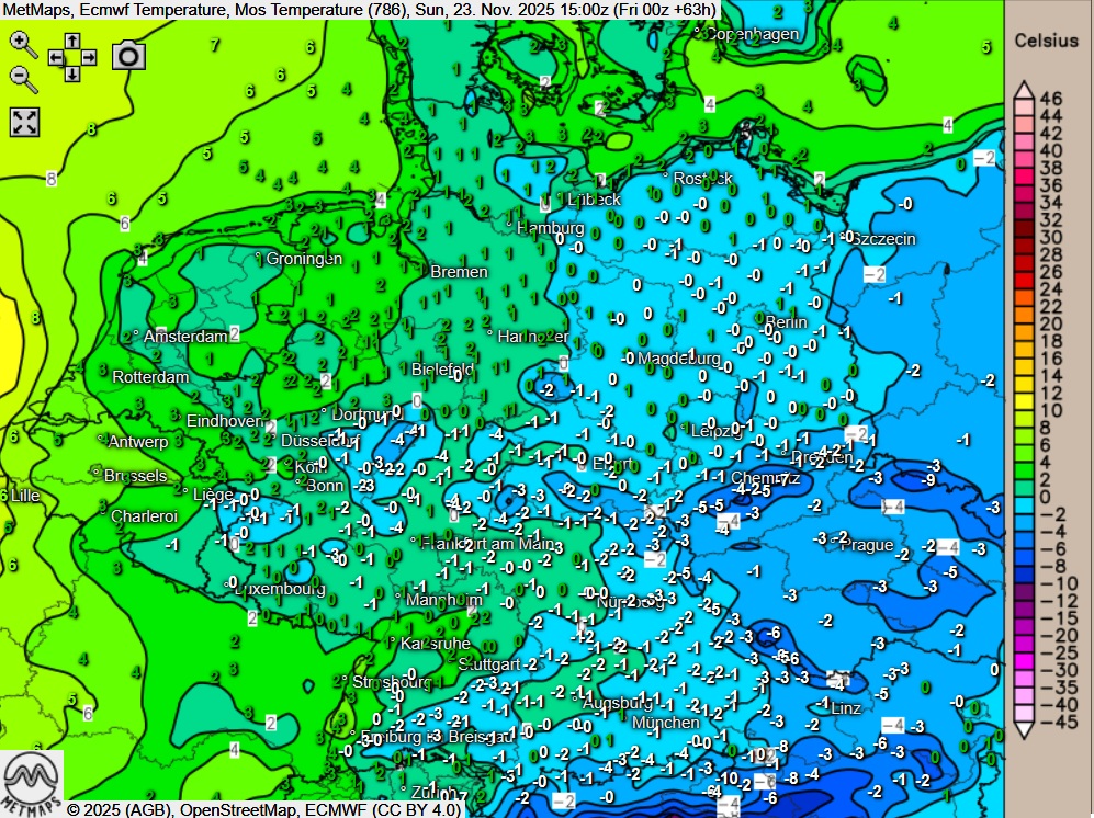 Höchstwerte am Nachmittag um -2 bis 4 Grad.