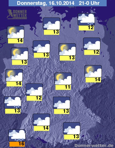 Der heutige Abend hält meist viele Wolken bereit, dabei ist das Gewölk vor allem im Süden und Westen, jedoch auch im Küstenumfeld meist dicht, im Südwesten des Landes, sowie entlang der Ostseeküste fällt dazu gebietsweise Regen, in den anderen Landesteilen ist es dagegen teils aufgelockert, teils stark bewölkt, aber weitgehend trocken, stellenweise bildet sich Dunst, Nebel entwickelt sich nur selten. Die Abendtemperatur liegt noch bei teils 16 Grad im Breisgau und etwa 12 Grad im Raum Berlin.
