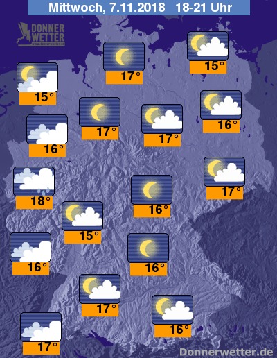 Am Abend verdichten sich die Wolken im Westen weiter und lassen es regional auch tröpfeln. Sonst präsentiert sich der Himmel meist nur leicht bewölkt oder klar.