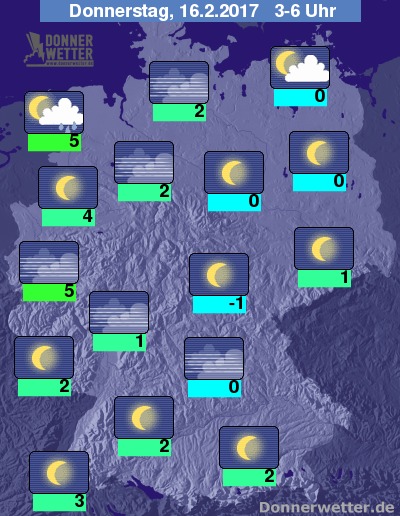 Im Thüringer Bergwald um minus 1 Grad C und im Ostfriesland um 5 Grad C.