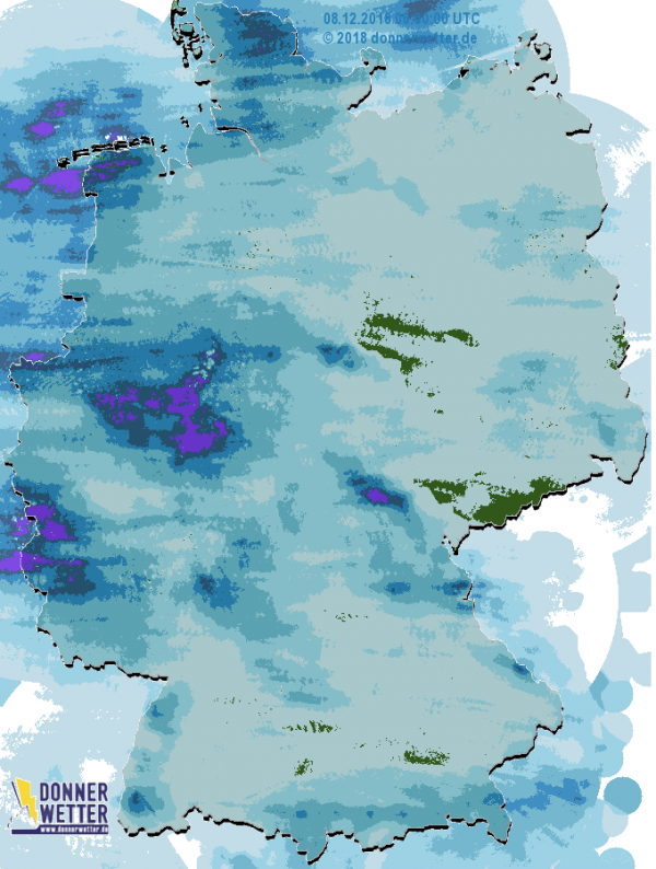 Heute halten sich verbreitet dichte Wolken, dabei fällt zeitweise, teils auch kräftiger Regen. Die Temperatur steigt auf milde 7 bis 10 Grad. Es weht ein oft starker bis stürmischer Wind.