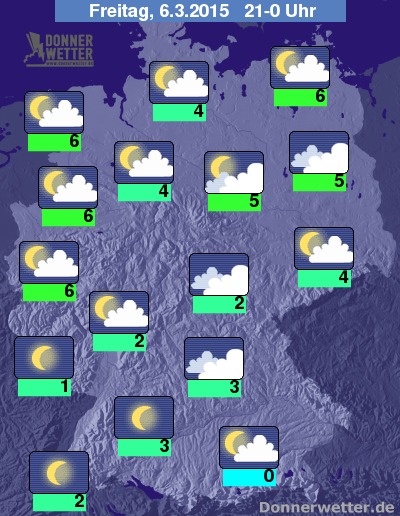 In der ersten Nachthälte sinken die Temperaturen auf Werte um +6 Grad C an der Ostsee und um 0 Grad C im Berchtesgadener Land.
