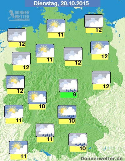 Der Start in die neue Wetterwoche präsentiert sich im wesentlichen so, wie die alte Woche endete, denn es ziehen immer wieder dichte Wolken durch, aus denen zeitweise Regen fällt. Jedoch kann sich gebietsweise auch die Sonne zeigen. Die Temperatur erreicht 9 Grad im Eichsfeld und bis 13 Grad an der Neiße.