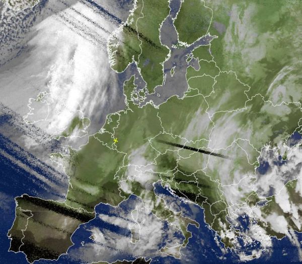 Auf dem Satellitenbild von heute Morgen werden die extrem umfangreichen Wolkenmassen des Islandtiefs über der Nordsee gut ersichtlich, hierbei herrscht verbreitet nasskaltes und stürmisches Wetter. Unter Tiefdruckeinfluss liegt ebenfalls ein Großteil von Südosteuropa, sowie das östliche Mittelmeer, an letzterem bildeten sich neben zahlreichen Schauern auch einige Gewitter.