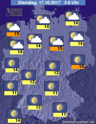 In der Nacht zum Dienstag ziehen über den Norden lockere Wolken hinweg. Von der breiten Landesmitte bis nach Süden hin zeigt sich der Himmel sternenklar, dazu bleibt es trocken. Die Temperatur sinkt auf 15 Grad in Magdeburg und bis 11 Grad in Augsburg.