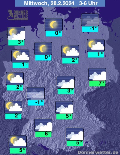 In der Nacht auf Mittwoch zeigt sich der Himmel südlich der Donau so wie in der Südosthälfte stark bewölkt; in den übrigen Landesteilen überwiegt geringe Bewölkung oder der Himmel ist sternenklar. Es bleibt trocken.