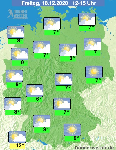 Die Temperaturen bewegen sich zwischen 6 und 12 Grad, am mildesten wird es dabei wohl ganz im Südwesten und im Lee einiger westdeutscher Mittelgebirge.