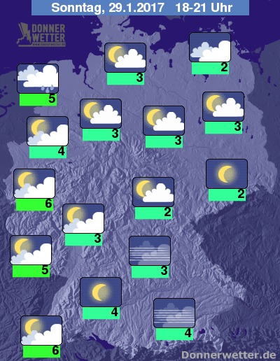 In der Nacht zum Montag ziehen dichte Wolken mit Regen, teils auch mit Schneeregen in den Nordwesten und Westen Deutschlands, stellenweise ist hier mit Glätte zu rechnen! Ebenfalls oft stark bewölkt ist es vom Norden, über den Nordosten bis in den Osten des Landes, hier bleibt es jedoch weitgehend trocken. Freundlicher und meist locker oder aufgelockert bewölkt ist es vom Süden bis in die Mitte Deutschlands, hier bleibt es trocken. Die Temperatur sinkt auf 3 Grad an der Nordsee und bis -4 Grad in Augsburg.