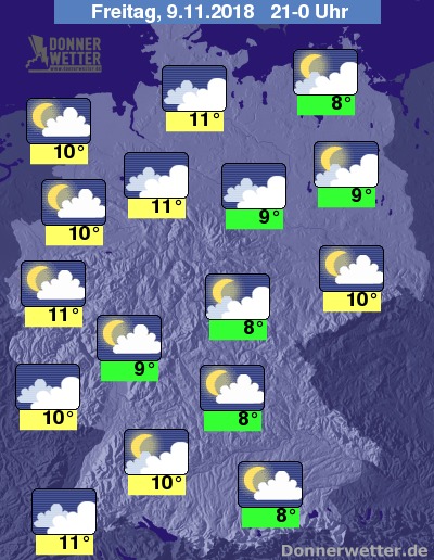 Bis Mitternacht bleibt es dann bei einer Mischung aus Wolken und Sterne. Die Temperaturen gehen zurück.