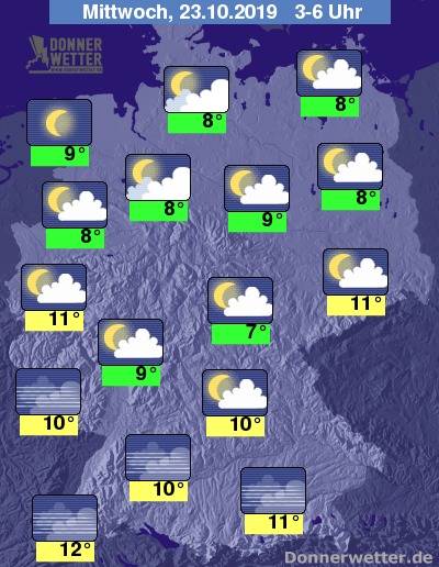 Während der zweiten Nachthälfte bleibt es im Norden und in der Mitte meist nur locker bewölkt oder sternenklar. Im Süden und Südwesten bilden sich häufiger Nebelfelder.