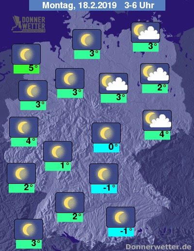 In der Nacht zeigt sich der Himmel entlang der Oder und zunächst auch noch nördlich des Weserberglands locker bewölkt. Im Norden klart der Himmel im weiteren Verlauf dann verbreitet auf. In den übrigen Landesteilen funkeln die Sterne die gesamte Nacht von einem wolkenlosen Himmel.