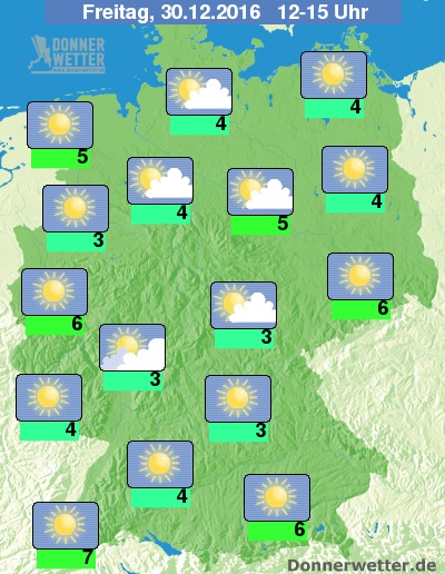 Am heutigen Nachmittag erwartet uns über weiten Landesteilen häufiger Sonnenschein. Am ehesten ziehen noch vom Norden bis in die Mitte des Landes einige, meist lockere Wolkenfelder durch, im übrigen Land ist es indes verbreitet sonnig. Es bleibt landesweit trocken bei Höchstwerten zwischen 3 und 7 Grad.