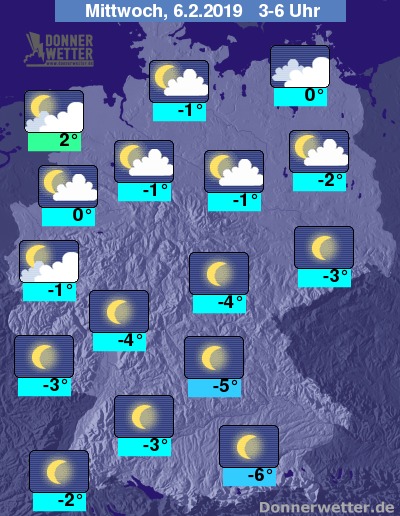 Die Temperaturen erreichen am frühen Morgen Werte um -6 Grad C am Alpenrand und um 2 Grad C in Emden.