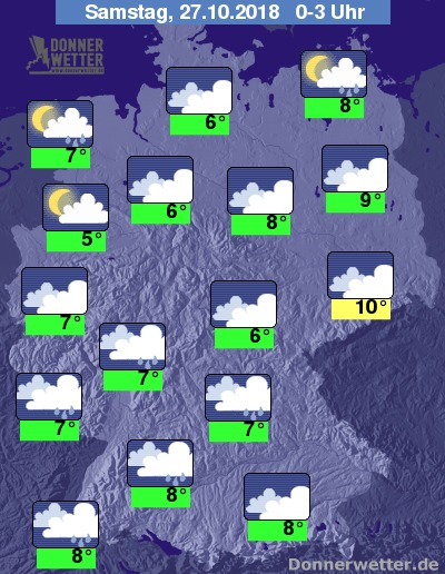 In der Nacht zeigt sich der Himmel über weiten Landesteilen zunächst bedeckt, im weiteren Verlauf lockern die Wolken in der Nordhälfte dann zunehmend auf. Entlang der Küsten sowie der gesamten Süd- und Südosdthälfte muss immer wieder mit Schauern, entlang und südlich der Donau auch teils kräftigem Regen gerechnet werden.