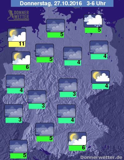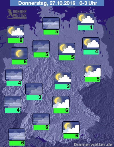 In der Nacht ziehen dicke Nebelfelder durch Deutschland. Vor allem im Norden und Südwesten halten sie sich die ganze Nacht über. Am drei Uhr in der Nacht breiten sie sich weiter Richtung Osten aus. Regen ist an der Nordsee- und Ostseeküste möglich.