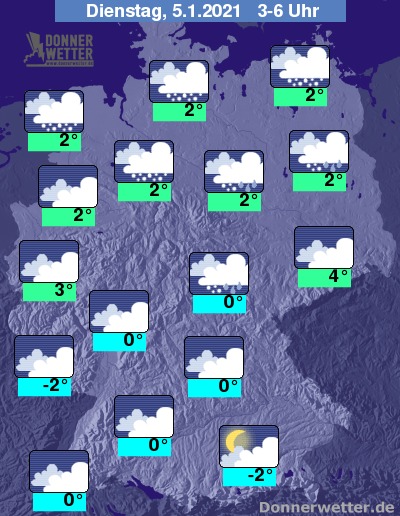 Die Temperaturen fallen auf Werte um 4 Grad in Leipzig und um -2 Grad am Alpenrand.