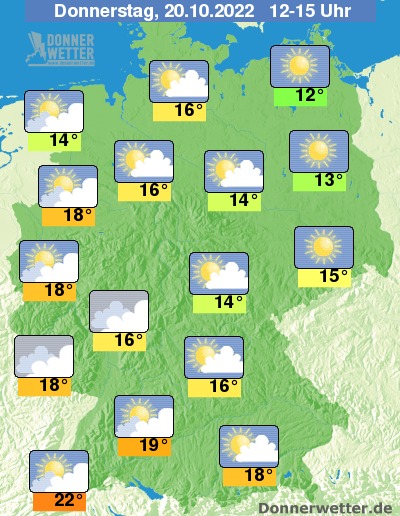 Heute Nachmittag scheint besonders über der Osthälfte Deutschlands verbreitet die Sonne und es ziehen hier nur lockere Wolken durch. In den westlichen Landesteilen ist es auch teils noch locker bis aufgelockert bewölkt, jedoch zieht es sich im Verlauf weiter zu, dabei bleibt es noch trocken. Die Temperatur liegt bei 12 Grad in Stralsund und 22 Grad in Freiburg. An der Nordsee ist es zudem oft stürmisch.