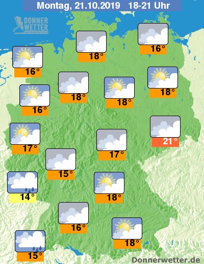 In den Abendstunden ist der Himmel zunächst bedeckt oder es ist aufgelockert bewölkt, in den späteren Abendstunden lockern die Wolken regional weiter auf. Es bleibt häufig trocken, nur im Südwesten muss in den nächsten Stunden mit Schauern gerechnet werden, zwischen Mosel und Oberrhein kann es zeitweise auch kräftiger und anhaltender regnen.