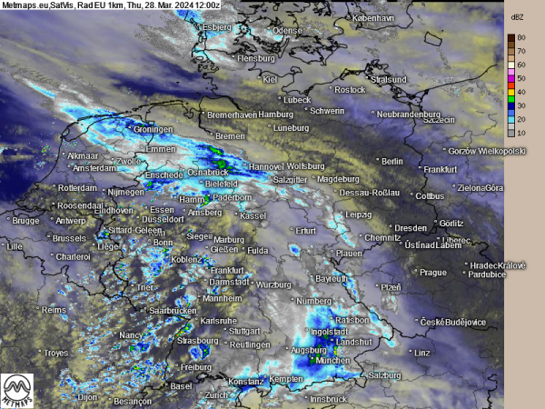 In einigen Regionen des Landes, etwa in Ostwestfalen und dem Teutoburger Wald, aber auch am Bodensee und in Oberbayern endete die erste Tageshälfte heute mittag sehr nass; komplett ohne Schirm ging es dagegen für die östlichen Landesteile bislang durch den Gründonnerstag.