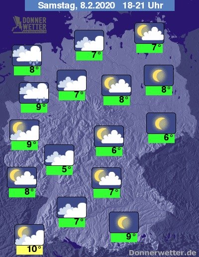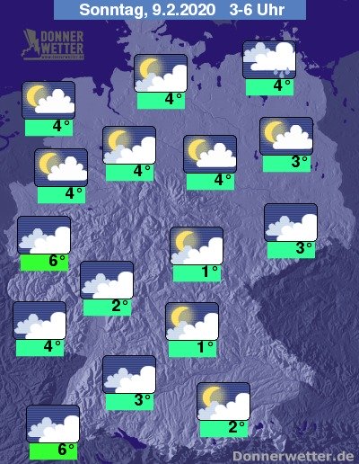 Am Sonntag ist es im Osten und Süden noch oft heiter, jedoch ziehen im Tagesverlauf auch zunehmend mehr Wolken auf. Im übrigen Land ist es stark bewölkt und ab dem Nachmittag setzt zuerst im Norden, gegen Abend auch im Westen Regen ein, sonst bleibt es aber trocken. Über der Nordwesthälfte weht ein starker, zunehmend stürmischer Wind. An der Nordsee herrscht teils schwerer Sturm. Die Temperatur erreicht milde 8 bis 13 Grad.