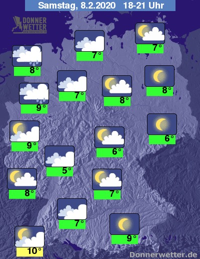 Heute Abend ziehen im Nordwesten dichte Wolken mit Regen auf. Von Bayern, über Sachsen bis nach Brandenburg ist der Himmel noch meist sternenklar. Im übrigen Bundesgebiet ist es teils aufgelockert, teils stark bewölkt und dazu weitgehend trocken. Die Temperatur liegt bei 5 Grad am Taunus und bis zu 10 Grad in Freiburg.