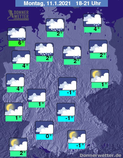 Temperaturen am Abend zunächst noch um -1 bis 6 Grad.