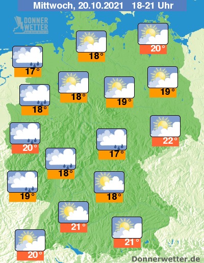 Heute Abend zeigt sich der Süden und Osten noch teils locker bis aufgelockert bewölkt und weitgehend trocken. Im großen Rest des Landes ist es hingegen meist stark und nur noch teils aufgelockert bewölkt, dabei bilden sich gebietsweise Schauer. Die Temperatur liegt bei 17 Grad in Jena und bis 22 Grad in Dresden. Es weht ein starker, oft auch stürmischer Wind, an den Küsten herrscht verbreitet Sturm.