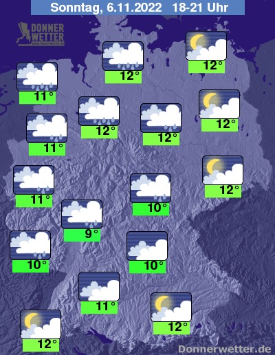 Heute Abend zieht ein großes Regenband von Südwesten her über die gesamte Nordwesthälfte Deutschlands hinweg. Viele und oft dichte Wolken ziehen auch über den Süden und Osten des Landes, dabei bleibt es aber weitgehend trocken. Die Temperatur liegt bei 9 Grad in Wiesbaden und 12 Grad in Berlin. Im Westen und Norden ist es teilweise stürmisch, an der Nordsee herrscht überwiegend Sturm.