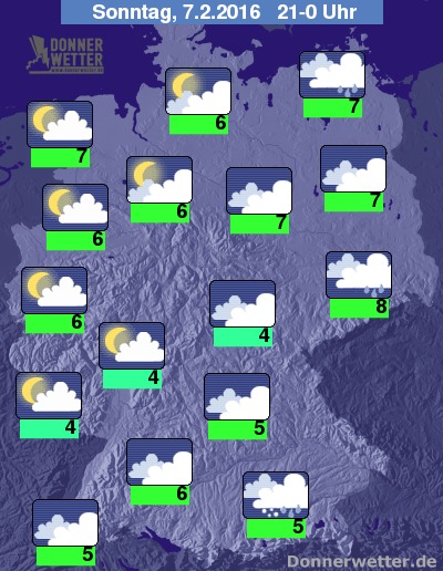 Heute Nachmittag ziehen von Westen her verbreitet dichte Wolken durch und es fällt zeitweise, zum Teil auch kräftiger Regen. Gegen Abend lockert es im Nordwesten und dann im Westen oft wieder auf, dazu bleibt es weitgehend trocken. Die Temperatur steigt auf 6 Grad am Pfälzer Wald und bis 11 Grad in Magdeburg. Im Norden und Westen weht ein teils starker Wind.