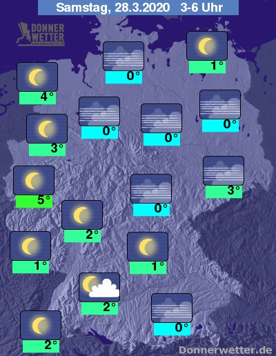 Bis zu den Frühstunden gehen die Temperaturen auf 0 bis 5 Grad zurück. Teilweise gibt es leichten Frost und Reif.