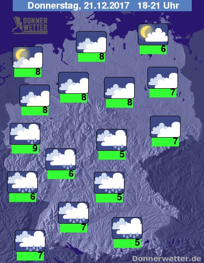 Die Tiefstwerte liegen dazu bei 3 Grad in Berlin und bei milden 6 bis 8 Grad entlang des Rheins.