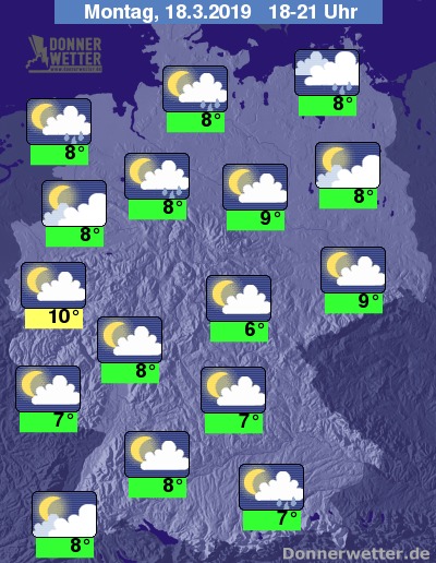 In den Abendstunden zeigt sich der Himmel zunächst noch meist locker oder aufgelockert bewölkt und vor allem im Küstenumfeld sowie am Alpenrand können gebietsweise noch einzelne Schauer fallen. In den übrigen Landesteilen bleibt es meist trocken.