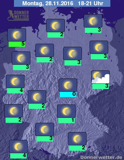 In der Nacht zum Dienstag ist der Himmel über Deutschland verbreitet sternenklar, dabei bleibt es auch trocken. Die Temperatur sinkt auf 1 Grad im nördlichen Emsland und bis -5 Grad im Eichsfeld.