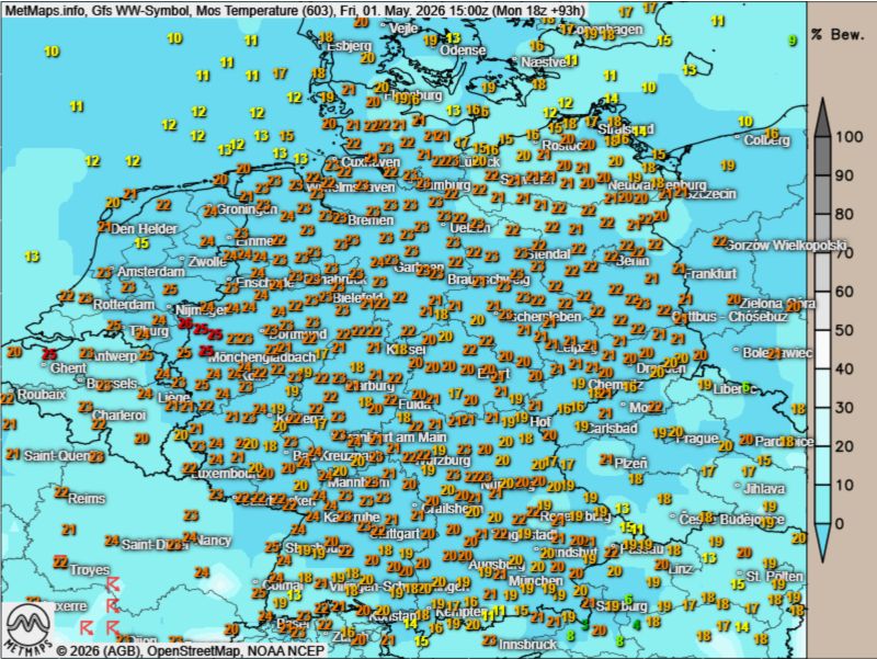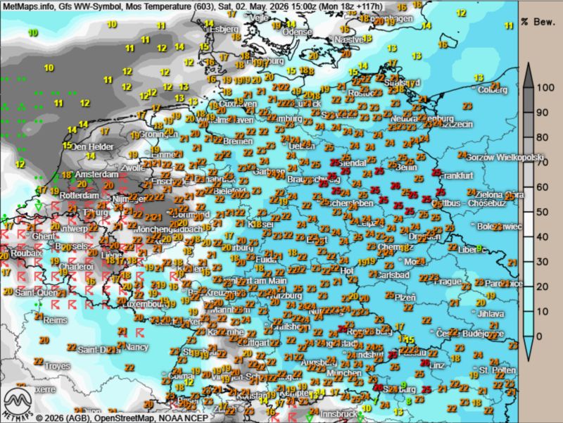 Das bevorstehende Wochenende verspricht wettertechnisch eine explosive Mischung: Bereits am Samstagnachmittag werden nach aktuellen Berechnungen des GFS-Modells im Westen und Südwesten Deutschlands die ersten kräftigen Gewitterzellen entstehen.
