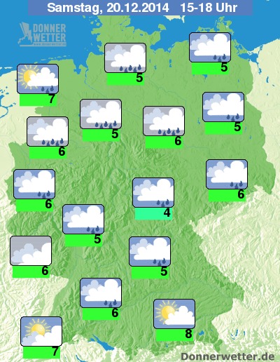 Heute Nachmittag kann sich im äußeren Süden des Landes noch zeitweise die Sonne zwischen den Wolken zeigen, aber auch hier zieht es sich später zu und es fällt gebietsweise Regen, sonst ist es bereits meist stark oder dicht bewölkt und es fällt immer wieder Regen. Dazu weht ein oft starker, in Böen und an den Küsten stürmischer, und hier in Böen auch orkanartiger Wind. Die Temperatur liegt bei 4 Grad im Vogtland und bis 8 Grad in München.