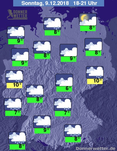 Heute Abend ist es weiterhin wolkenverhangen und es fällt wiederholt, teils auch kräftiger Regen. Die Temperatur liegt bei 6 bis 10 Grad. Der Wind weht noch teils stark und an den Küsten stürmisch.