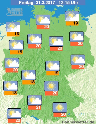 Hier sehen Sie die Höchsttemperaturen für Samstag 14 Uhr (01.04.2017):