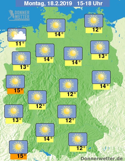 Die Temperaturen erreichen Höchstwerte um 11 Grad C in Ostfriesland und um 15 Grad C in der Kölner Bucht.