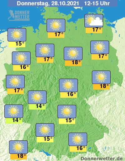 Heute zeigt sich der Herbst verbreitet heiter bis sonnig, dabei bleibt es trocken. Die Temperatur liegt bei 14 Grad am Westerwald und bis 18 Grad in der Lausitz.