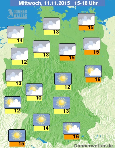 Am Nachmittag ist es in weiten Teilen der Nordhälfte dicht bewölkt oder bedeckt. Im Süden überiwiegt zur Wochenmitte weiterhin heiterer oder locker bewölkter Himmel, entlang der Donau sowie in den Mittelgebirgen sind auch längere sonnige Abschnitte möglich.