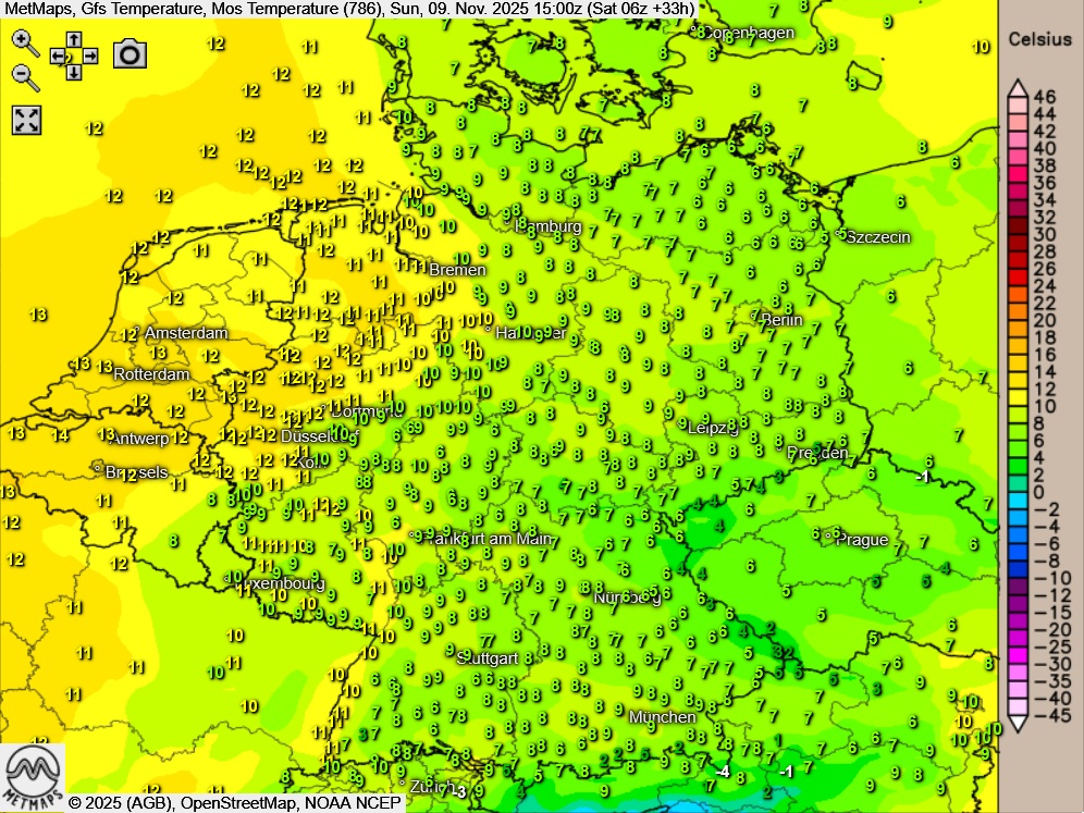 Höchstwerte am Nachmittag um 6 bis 13 Grad.