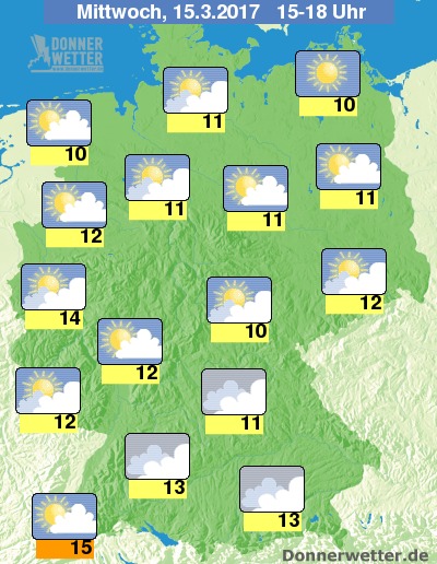 Die Temperaturen erreichen an der Nordsee um 9 Grad C und am Oberrhein um 15 Grad C.