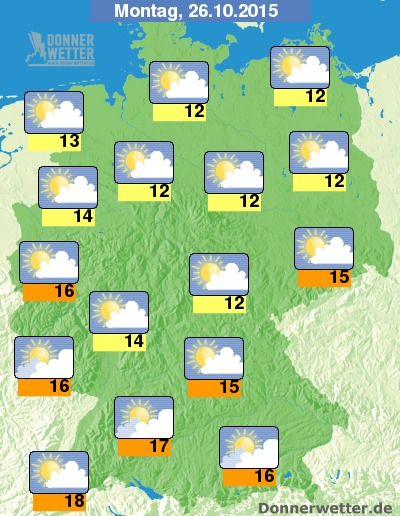Heute ist es vor allem in der ersten Tageshälfte noch häufig stark bewölkt oder trüb, nach und nach kann sich die Sonne jedoch besser durchsetzen und besonders im Süden und Westen ist es dann auch verbreitet sonnig, sonst gibt es meist einen Wechsel aus Sonne und Wolken, dabei bleibt es landesweit trocken. Die Temperatur steigt auf 12 Grad an der Müritz und bis 18 Grad im Breisgau.