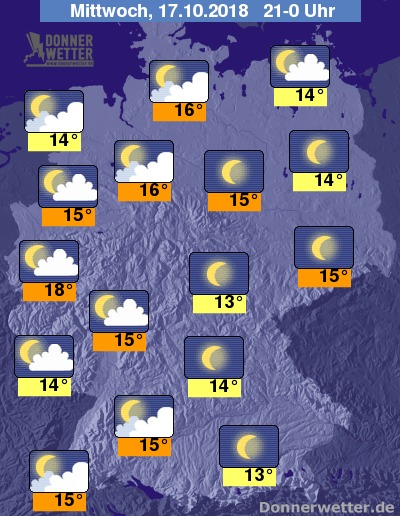 Während der ersten Nachthälfte wird die Bewölkung im Nordwesten dünner und lässt Halbmond und Sterne verschwommen erkennbar werden. Sonst bleibt es oft klar oder nur leicht bewölkt. Die Temperaturen gehen zurück.